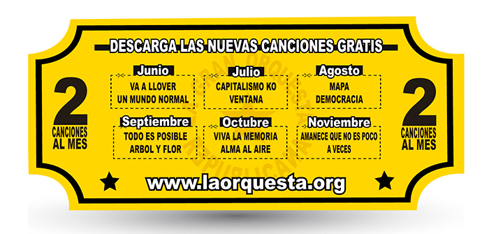 La gran orquesta republicana presenta su nuevo proyecto “2 canciones al mes” que consiste en la salida para descarga gratuita de 2 canciones cada mes durante 6 meses (de junio de 2014 a noviembre de 2014).