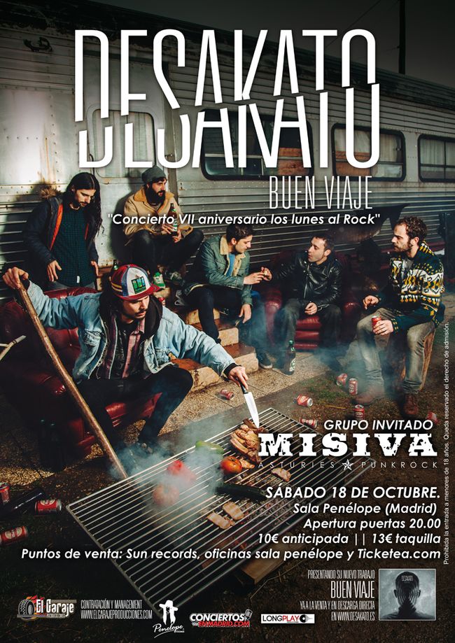 Desakato es una de las bandas con mayor potencial y reconocimiento de público y crítica de la última década del rocanrol estatal. De una frescura innegable. Golpeando con nuevo material cada dos años, con la precisión temporal de un martillo pilón y la fuerza de una taladradora de los mineros de su querida tierra, los asturianos presentan su cuarto trabajo discográfico bajo el título de ‘Buen Viaje’, una propuesta que nos trae los ingredientes reconocibles del sonido que levanta polvaredas en sus conciertos, pero sin repetir en ningún caso fórmulas empleadas en entregas anteriores.