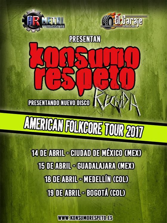 Presentamos las fechas que KONSUMO RESPETO ofrecerán en Latinoamérica en el mes de Abril. Tras la vuelta de la banda con su nuevo disco "Recaída" nos llegaban multitud de mensajes de promotores y público con ganas de tenerles de vuelta al otro lado del charco.