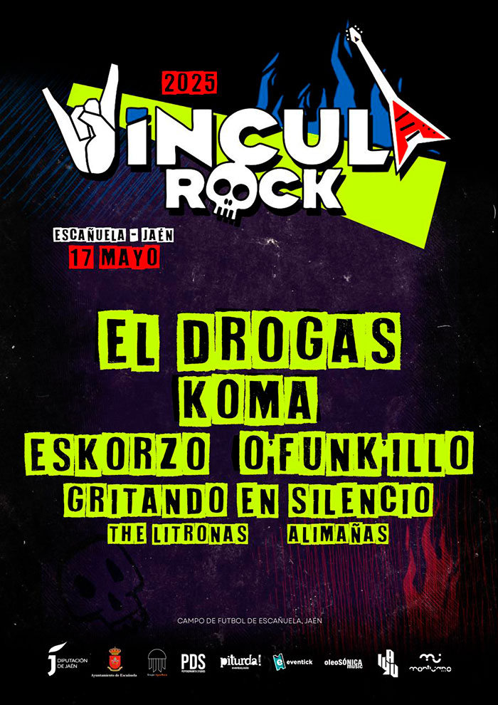 Completan el cartel los toxirianos Alimañas y la banda local The Litronas, dos buenas muestras del talento local que se ha generado, precisamente, al calor de un Víncula que este año se renueva manteniendo su esencia gracias a la incorporación de oleoSÓNICA Music como promotora. La oficina jiennense ha pensado en una propuesta que aúne calidad y diversión, con la vista puesta en el rock, pero sin perder la ocasión de que Escañuela, y toda la provincia, puedan tener a su alcance grandes bandas que sorprendan y revolucionen al fiel público de un festival que, para la nueva organización, no tiene que renunciar a crecer dentro de su espíritu.